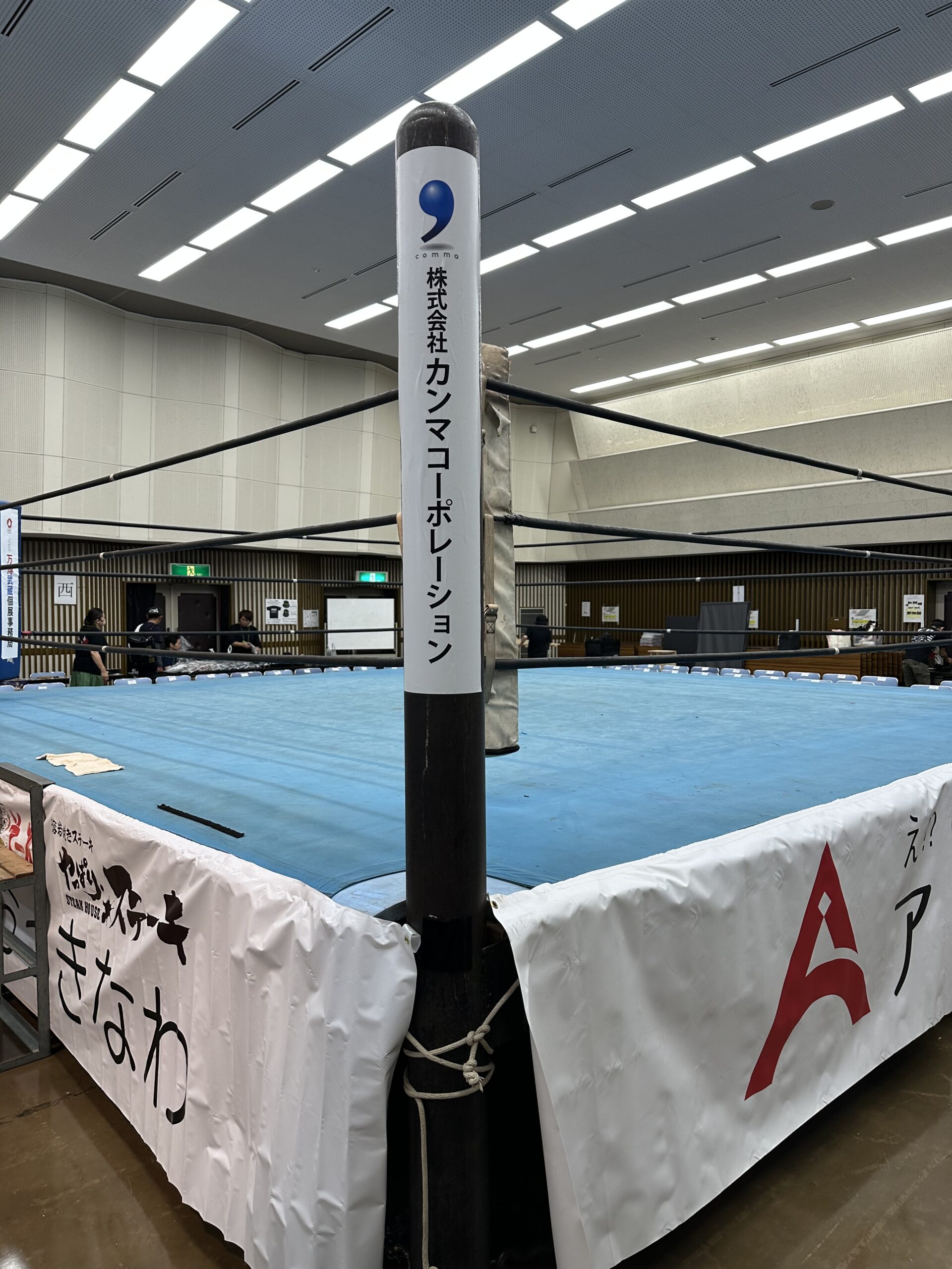 当大会会場では弊社の社名がコーナーポストへ掲示されておりました。